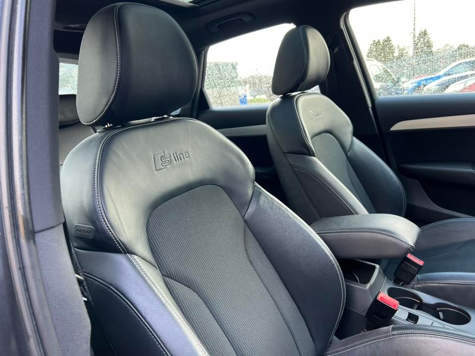 This stunning Audi Q3 S Line TDI Quattro Automatic is hpi clear and in lovely condition inside and out. Well maintained with services completed at 18k/35k/44k/54k/68k/74k/83k. New service just completed and first 4 services completed by Audi main dealers. Excellent 2.0l diesel engine which is only £195 tax and offers a combined fuel economy of 54.3mpg whilst producing 147bhp. Long life belt fitted which is not due to be changed until 140k miles regardless of timeframe. Cheap to insure as its only insurance group 21e so is very low. Only 1 former keeper with 1 on record now and comes with X2 remote keys. Well equip car loaded with tech and comfort features and looks the business in metallic grey and gloss black alloys. Drives great with a smooth automatic gear box and is being supplied with an advisory free MOT, new service and 24 months warranty. Finance available upon request and part exchanges welcome.