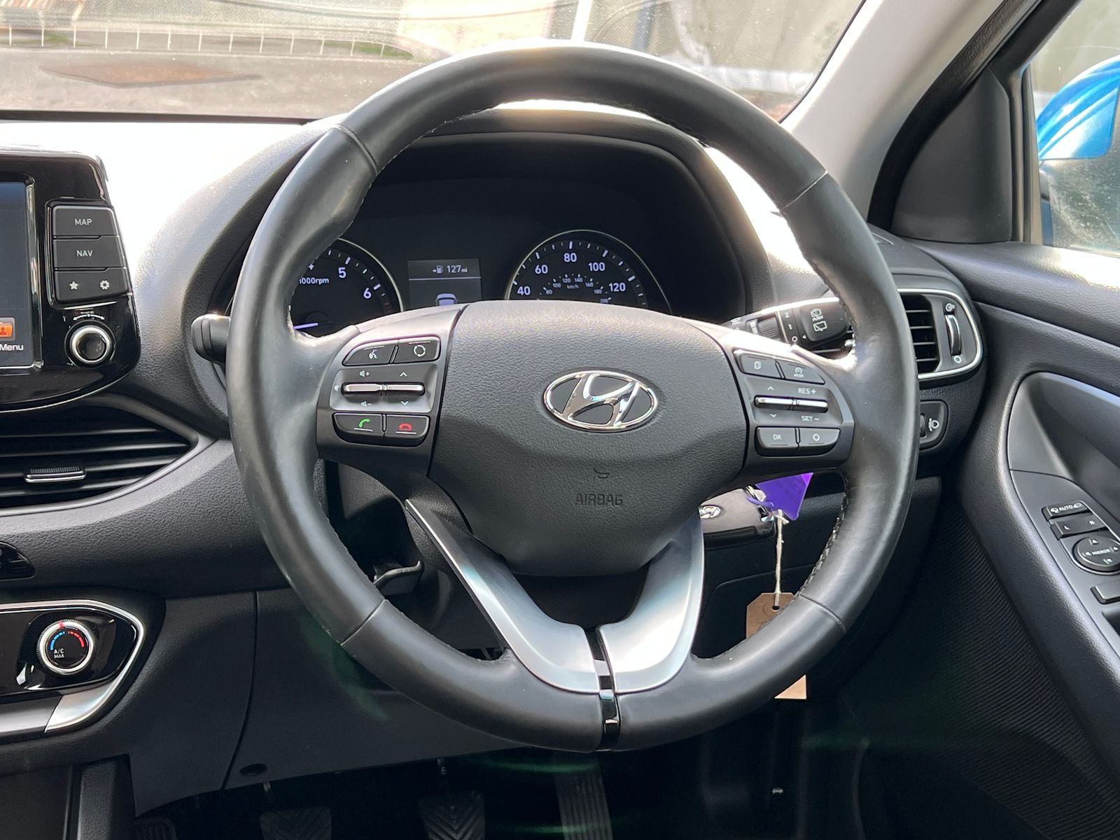 2 YEARS WARRANTY THIS MONTH-This stunning Hyundai i30 Se Nav is hpi clear and in lovely condition inside and out. Well maintained with services completed at 4k/6k/8k/18k/29k/39k/49k/69k/79k/82k. New service just completed and all previous services completed by Hyundai main dealers giving this car a staggering full main dealer service record. Excellent 1.4l petrol engine which is only £195 tax and offers a combined fuel economy of 52.3mpg whilst generating 138bhp. Chain driven so no cambelt to worry about changing. X2 remote keys and is a local main dealer part exchange which has now come to us to find a new home. Only 1 former keeper with 1 on record now. Well equip car loaded with tech and comfort features and looks the business in metallic blue and gloss black alloys. Drives great and is being supplied with an advisory free MOT, new service and 24 months warranty. Finance available upon request and part exchanges welcome.